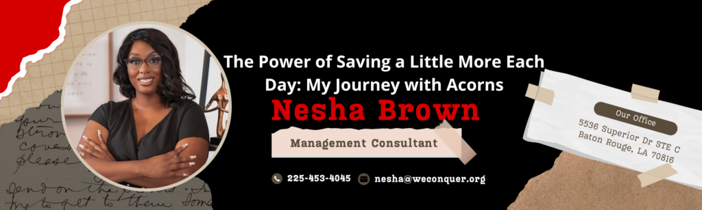 Nesha Brown is a dedicated Founder and Idea Strategist, passionate about driving innovation and achieving success through creative approaches. As the Founder of the Conqueror Community Savings Program, Nesha is committed to empowering individuals and businesses to overcome financial challenges and achieve their goals. She actively shares her expertise through the Conquer & Prosper eLearning platform and newsletter, providing valuable insights and strategies for financial success. Nesha’s dedication to helping others rebuild their financial health is evident in her innovative programs and educational resources.